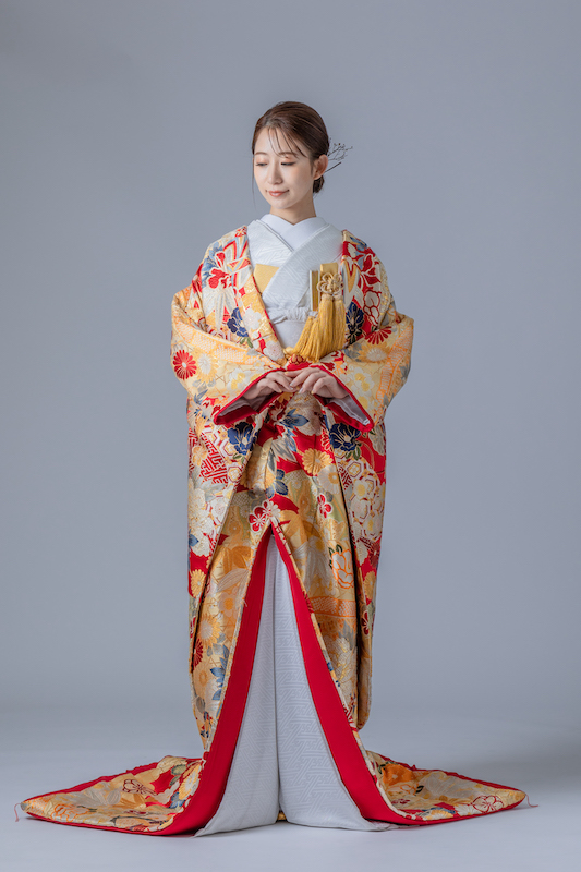 婚礼衣装の定番の赤がベースのお着物です