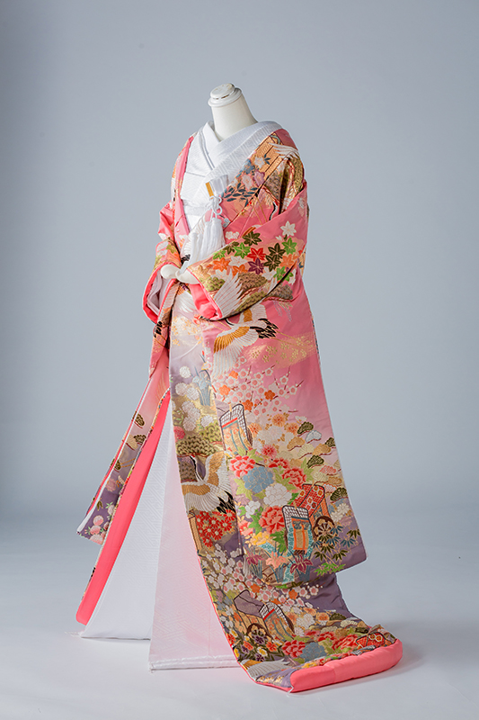 ピンク地の色打掛でキュートに、そして裾にかけてパープルの