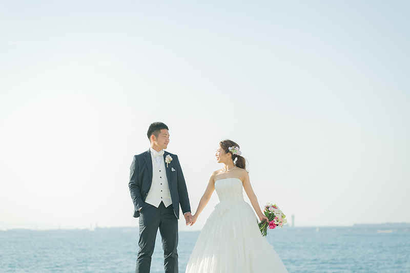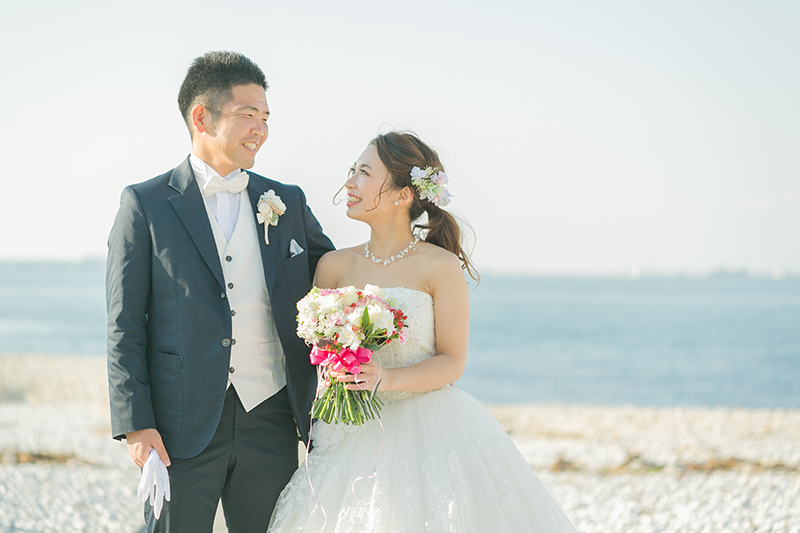 海沿いの爽やかなロケーションに、絵になるお二人♡♡
