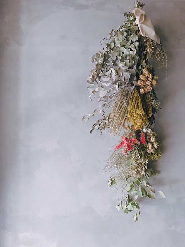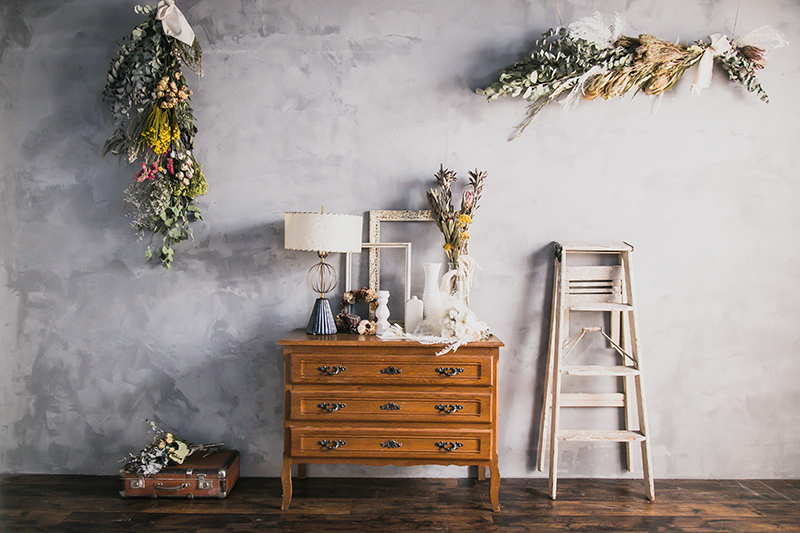 グレーのアンティークなムードたっぷりの壁に
