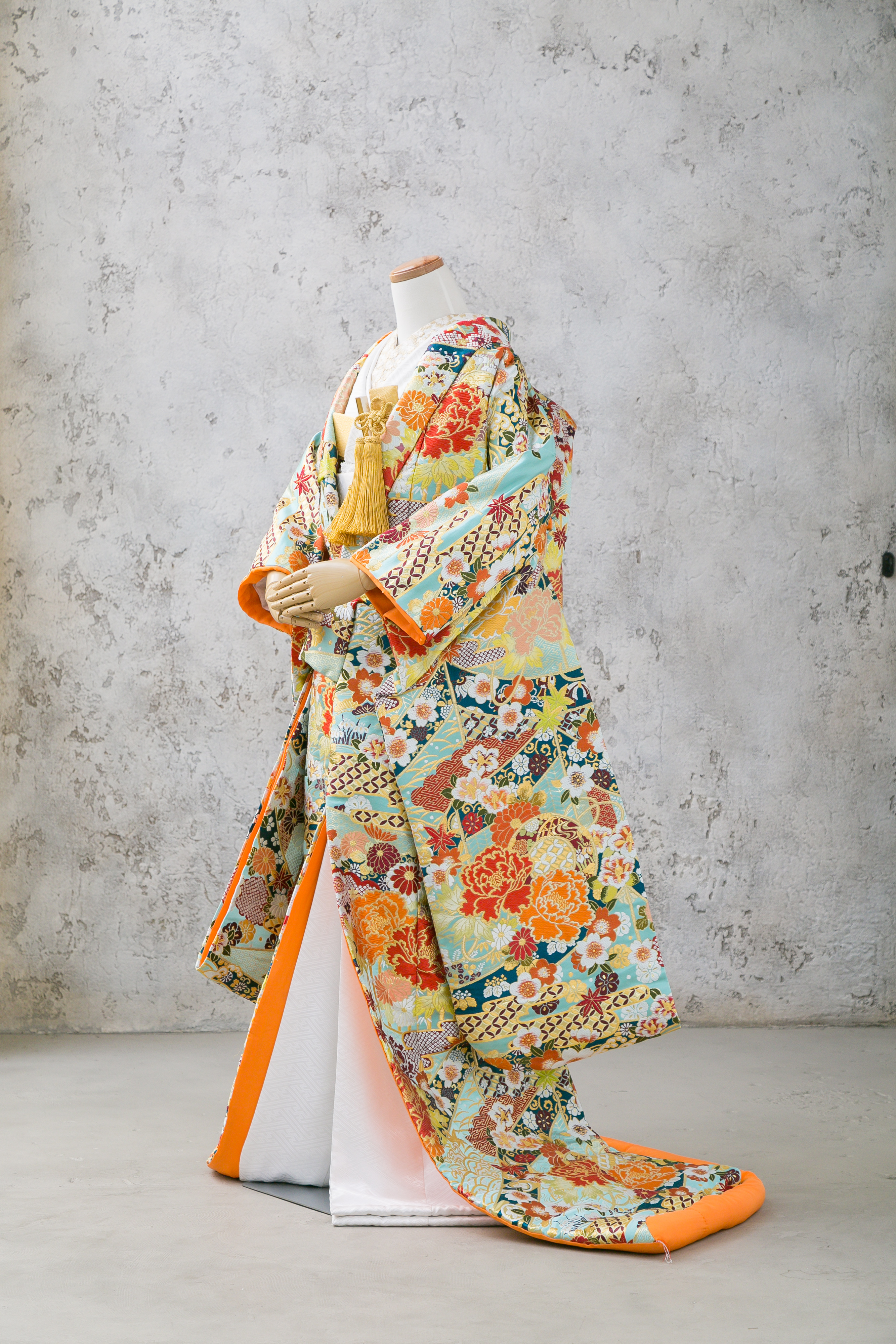 オレンジとアクアカラーが印象的で 個性のある1着☆