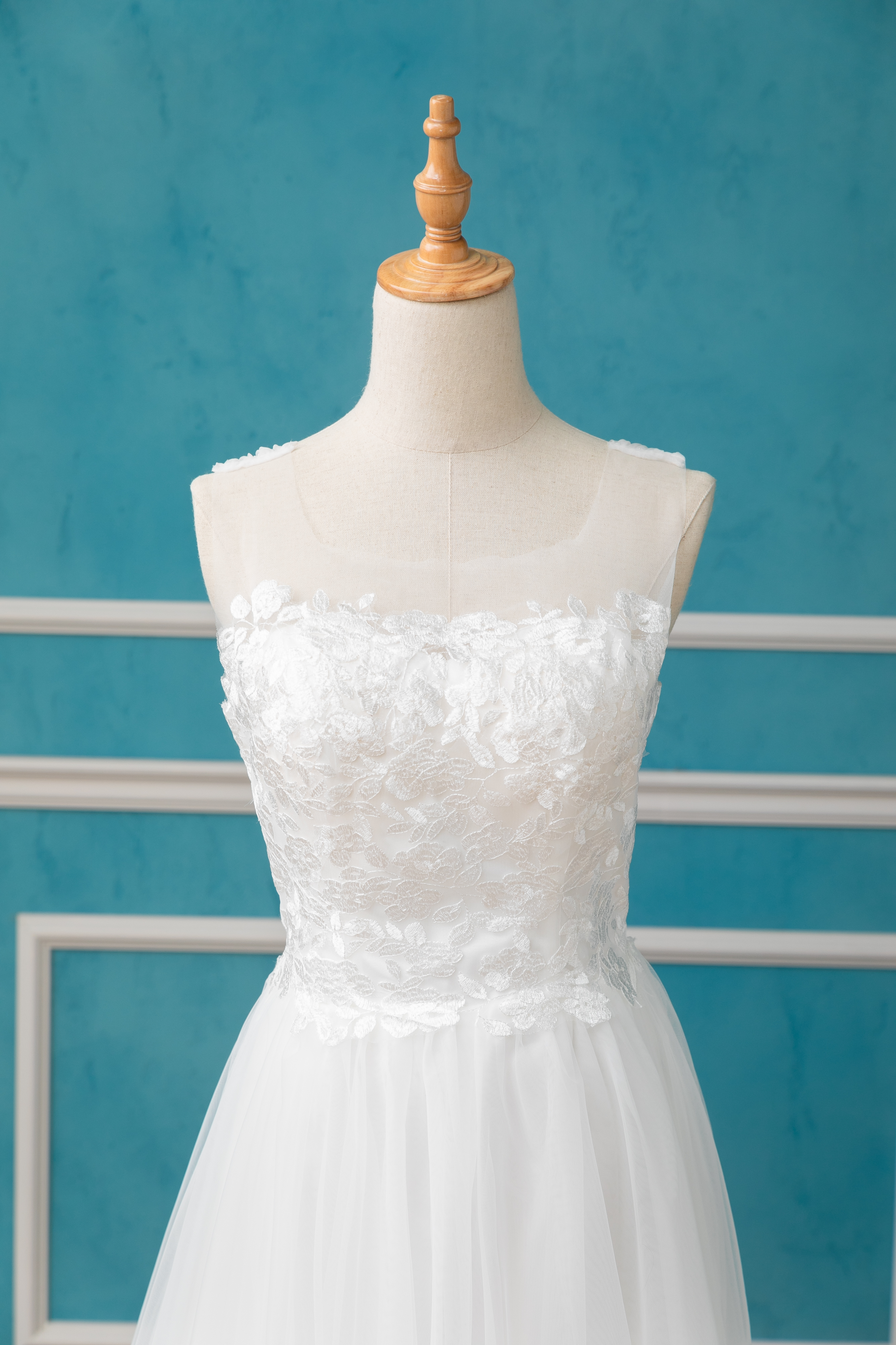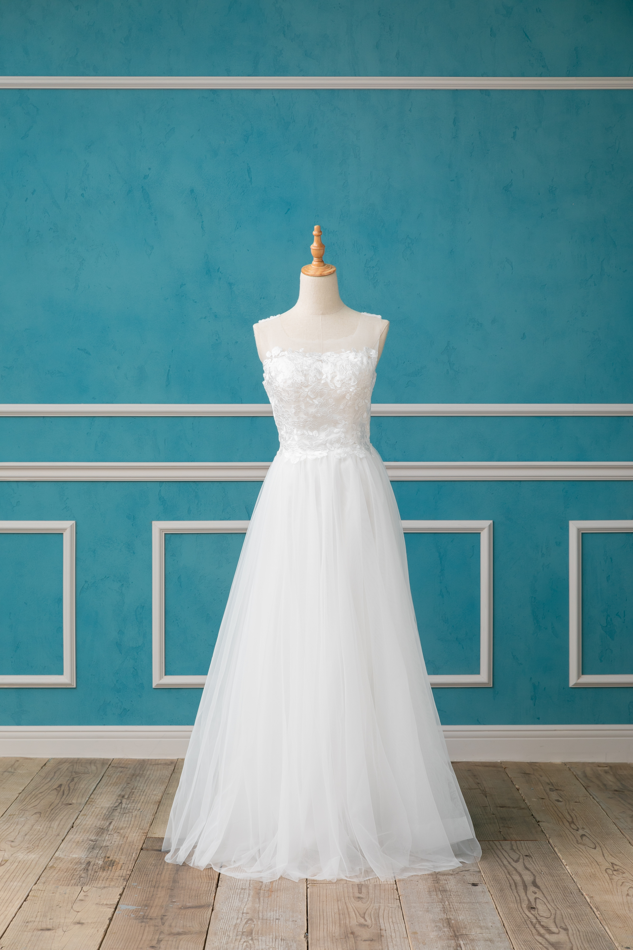 胸元の優しいレースやオーガンジー生地が 素敵です◎