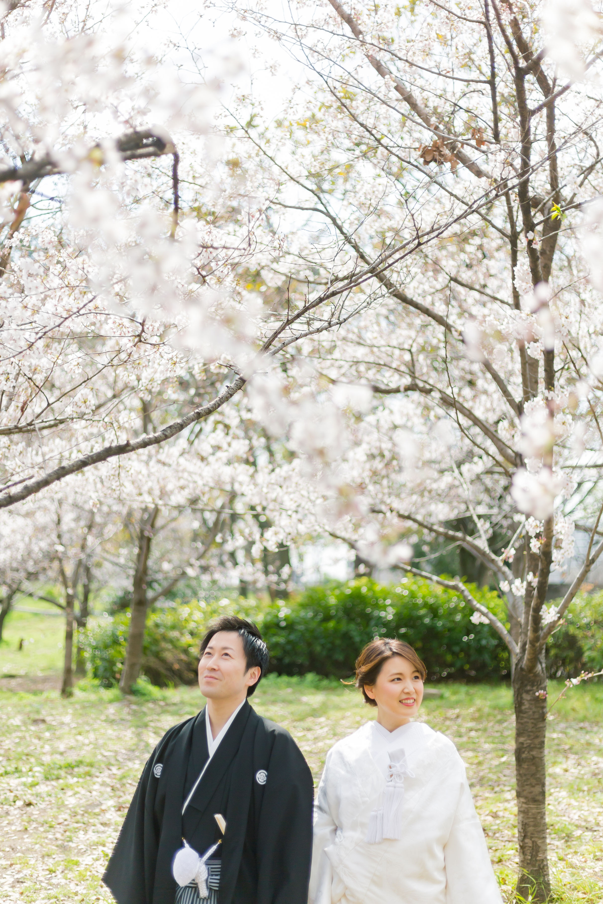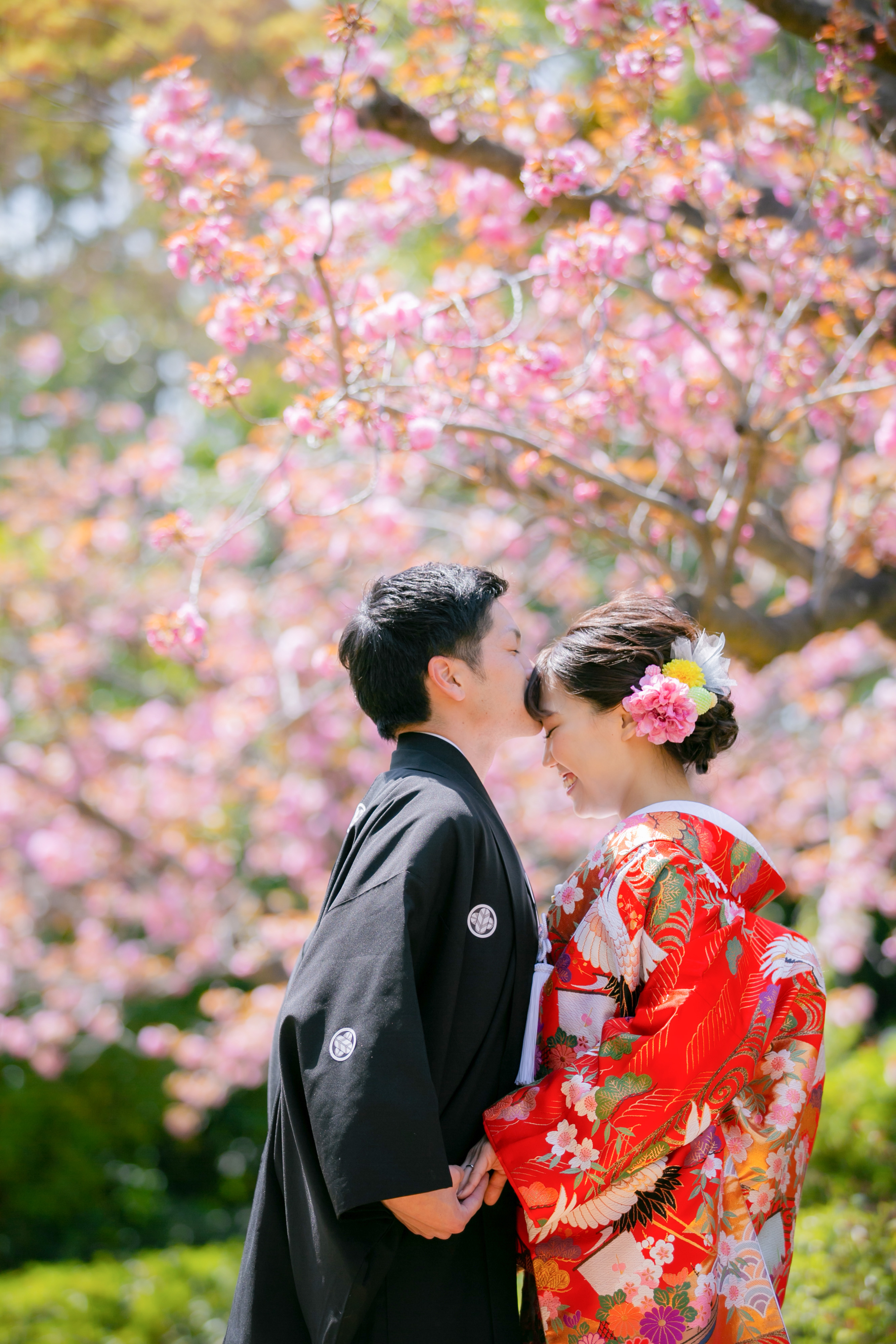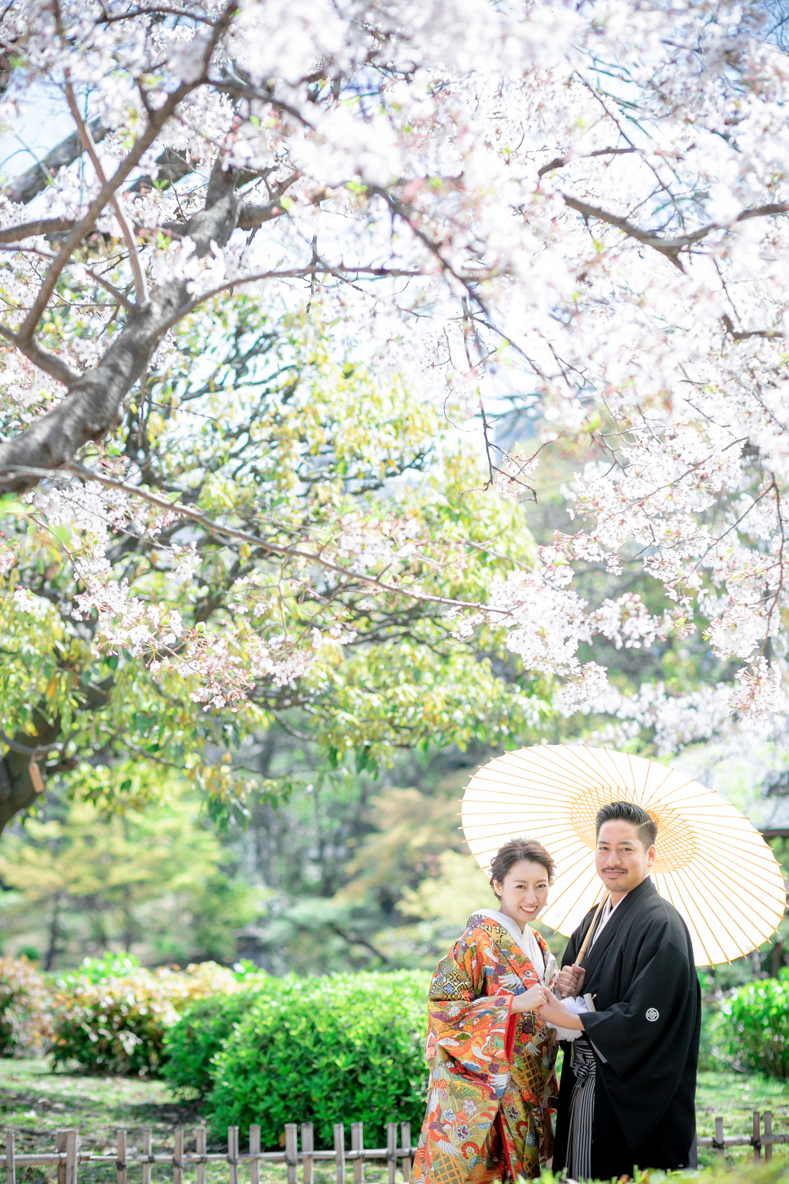 庭園の景色と桜で 和装を存分に楽しめます♪