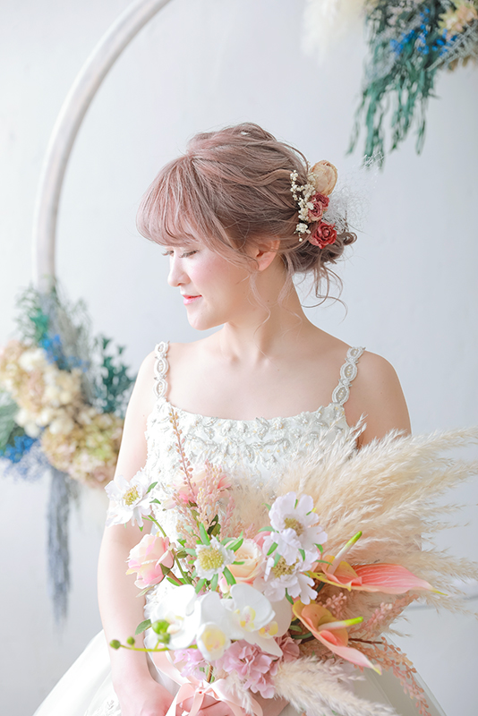 新婦様の髪色が ブーケやスタジオの