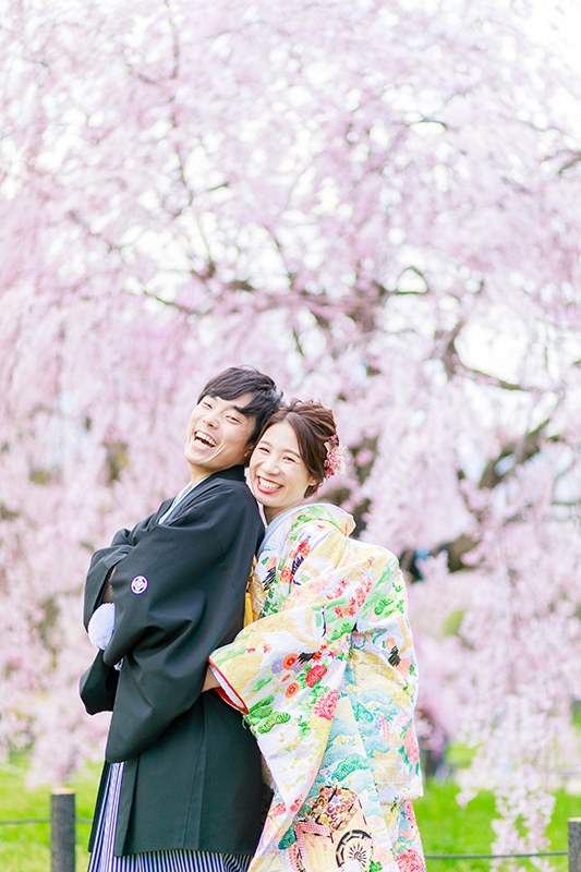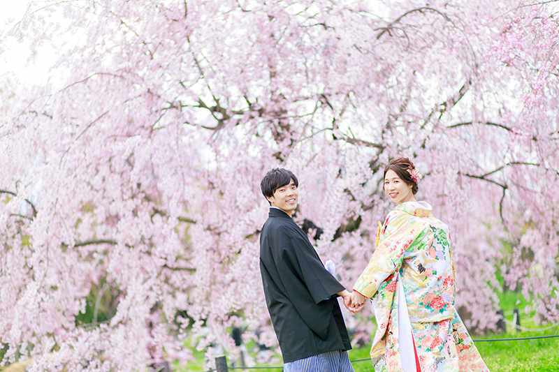 桜がお写真に加わると、お二人の晴れ姿も
