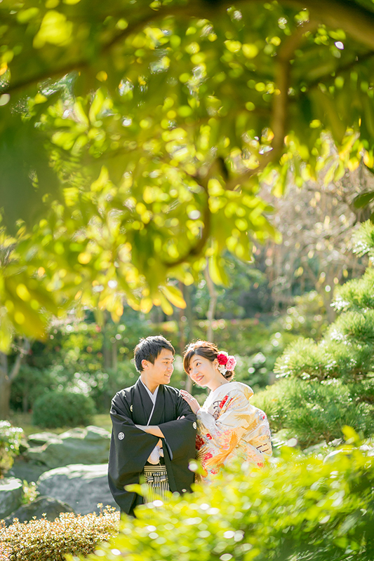 緑の中に、晴れ姿のお二人がよく映えますね◎