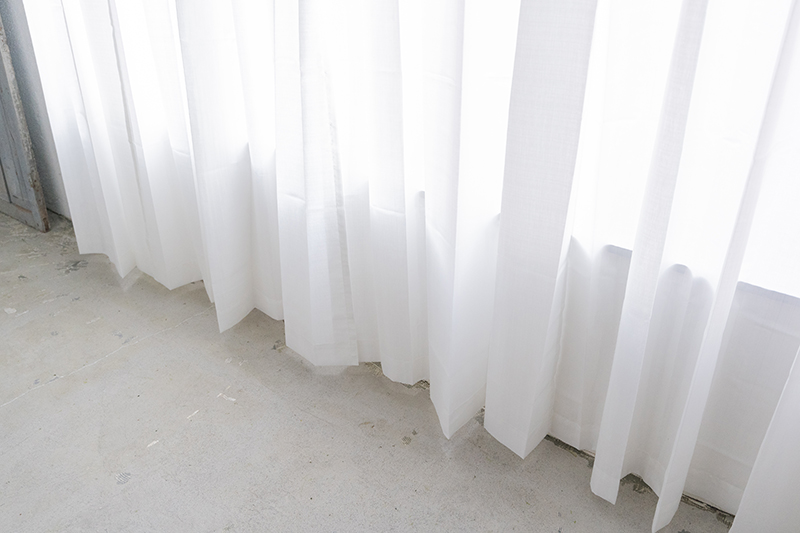 天井に近い高さからのカーテンも、