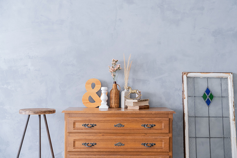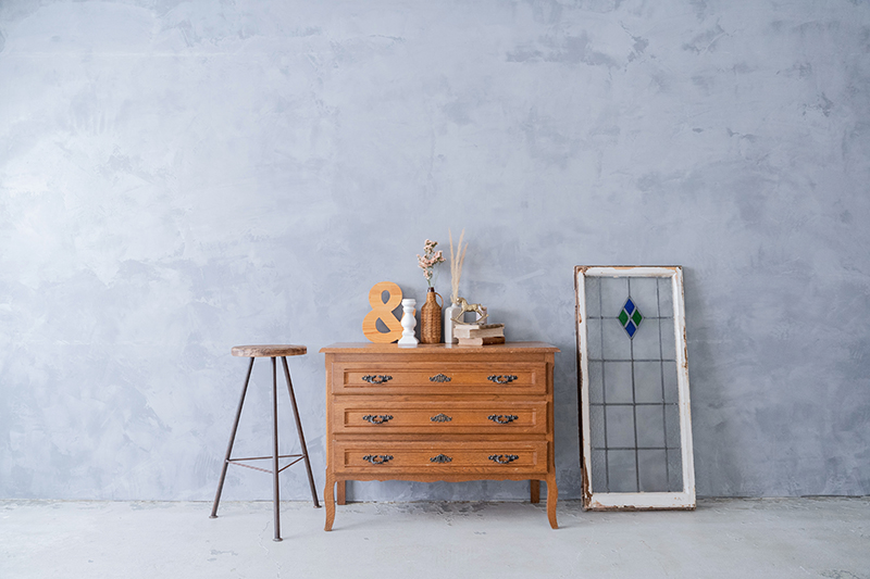 シンプルグレーと、ヴィンテージファニチャーで