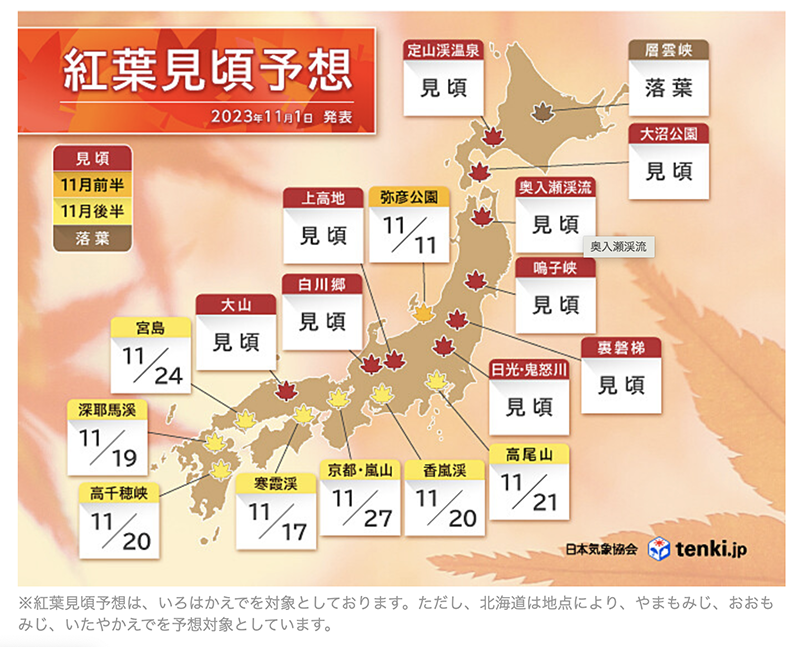 \\ 紅葉見頃時期予想 情報 //
